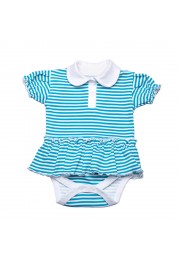 Боди Аква легко одевается через голову, благодаря двум кнопочкам возле горловины и кнопочкам на боди между ножек.