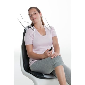 Кроме того, массажер оснащен 3-хуровневой функцией вибрации в сиденье и функцией инфракрасного нагрева в массажных головках. Уникальная комбинация интенсивного массажа шиацу, вибромассажа и теплового излучения обеспечивает эффективное и расслабляющее действие массажной накидки.