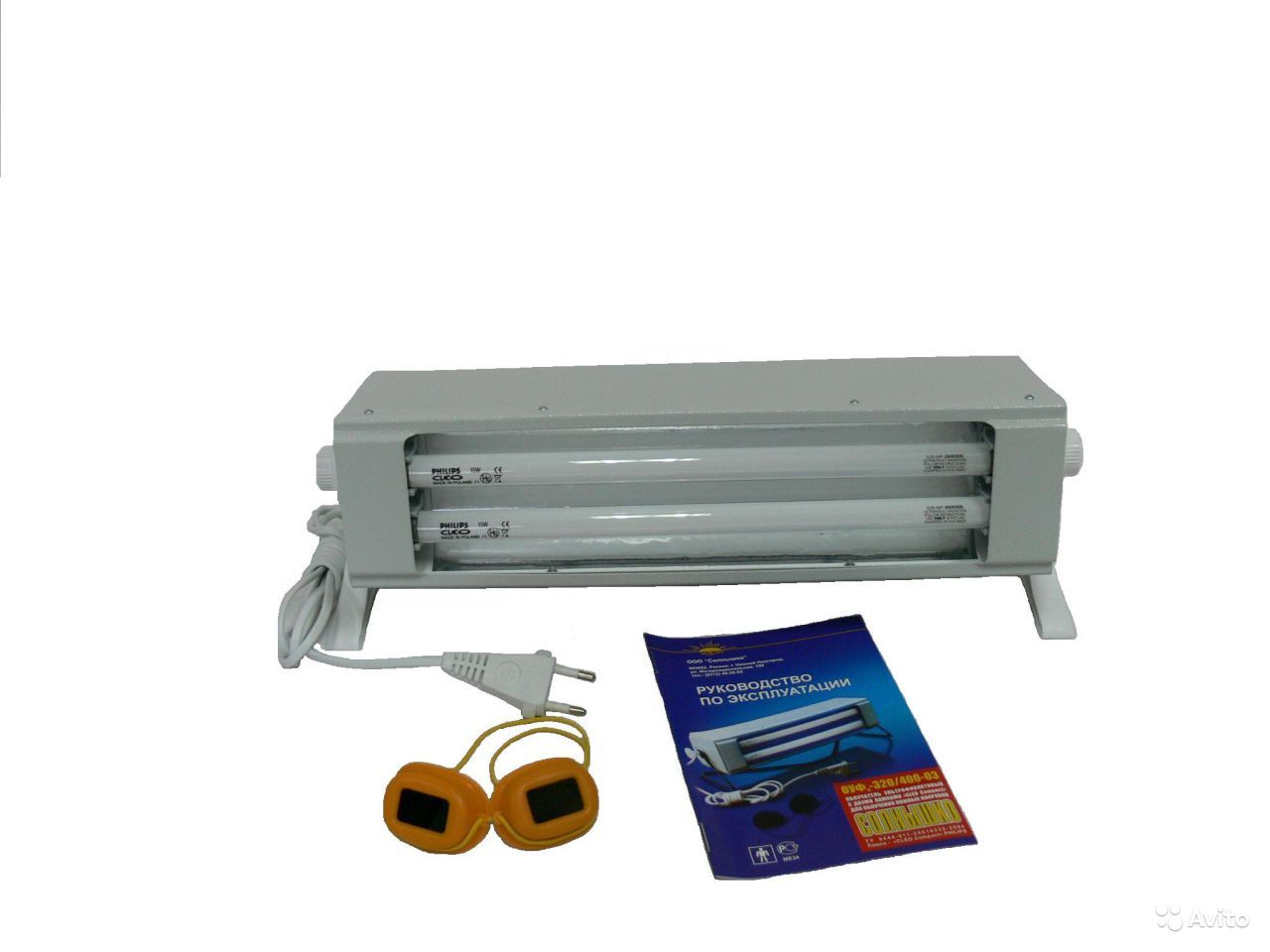 Ультрафиолетовый облучатель ОУФк-03 <<Солнышко>> предназначен для облучения кожных покровов при заболеваниях и травматических повреждениях кожи, опорно-двигательного аппарата, для профилактики рахита у детей и закаливания организма. Ультрафиолетовый облучатель <<Солнышко>> может использоваться как в условиях лечебных учреждений, так и в домашних условиях. Прибор отличается от многих других тем, что способен создавать наиболее благоприятный для человека диапазон излучаемых волн, а достигается это за счет использования пары инновационных ламп марки Philips Cleo Compact. Лампы помещены в металлический ударопрочный корпус, который крепится винтовыми креплениями к пластиковой подставке. С их помощью Вы можете выбрать угол наклона корпуса, удобный для проведения процедуры облучения. А надев стильные защитные очки, которые входят в комплект, Вы можете представить себя загорающим где-нибудь на морском пляже. Облучатель ОУФк-03 <<Солнышко>> также восполнит недостаток солнечного света в осенне-зимний период. Прибор можно использовать и для проведения процедур закаливания.